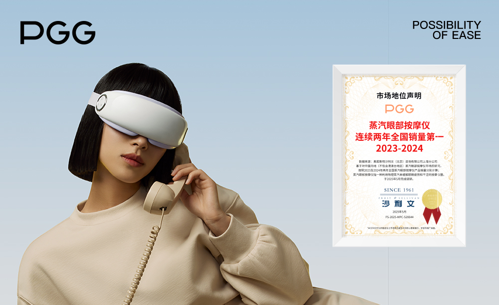我们凭借硬核科研与创新实力,斩获多项权威荣誉与行业认证,构建起强大的产品背书:其产品功能及效果得到三甲医院眼科医生认可推荐;并联合华测开展28天真人功效实验,证实产品对于干眼症及眼部疲劳问题能有效改善,并且对于眼部黑眼圈和眼袋有一定改善,PGG蒸汽眼部按摩仪产品获沙利文“连续两年全国销量第一”认证;