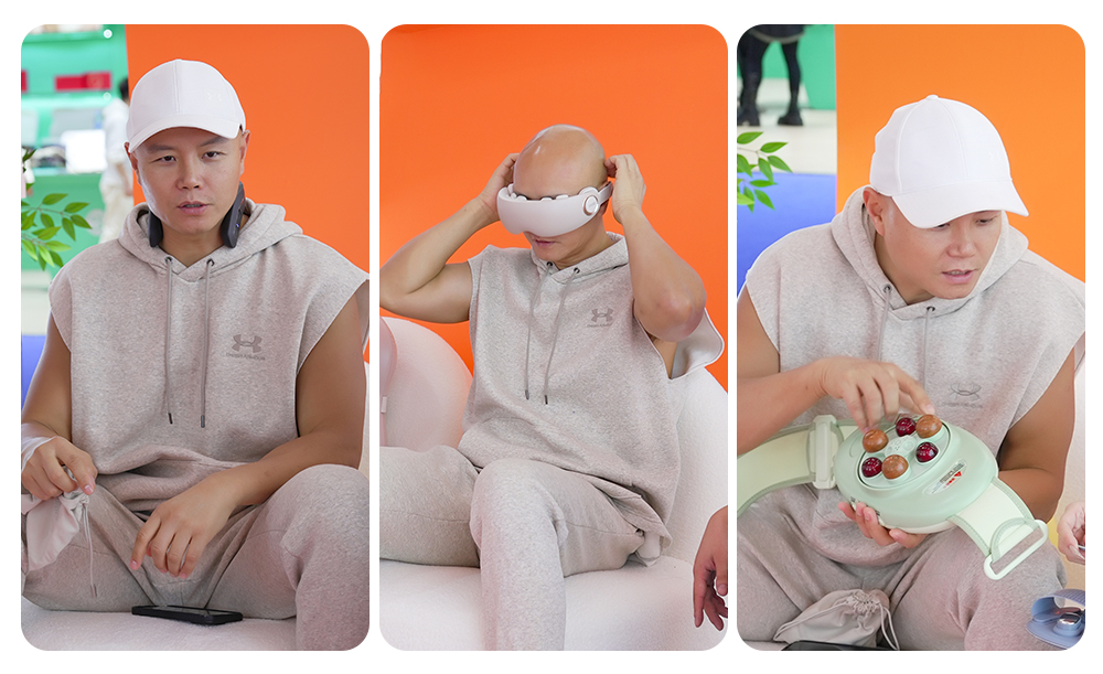 展会最后一天,正当采购商们沉浸在新品体验中时,神秘嘉宾乐嘉的现身引发全场轰动。作为公众熟知的主持人与作家,乐嘉对生活类产品有着独特的审视标准,此次他主动走进我们的展位,饶有兴致地开启了深度体验之旅。从便携按摩仪到智能放松设备,乐嘉逐一上手试用,并不时与我们的工作人员交流产品设计理念。